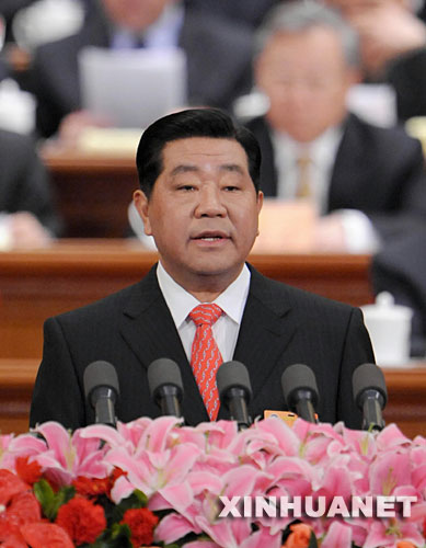 3月3日,中国人民政治协商会议第十一届全国委员会第一次会议在北京人民大会堂开幕。贾庆林代表政协第十届全国委员会常务委员会向大会作工作报告。新华社记者饶爱民摄