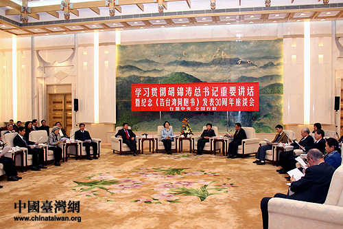 台盟中央、全国台联4日上午在人民大会堂举行学习胡锦涛总书记重要讲话暨纪念《告台湾同胞书》30周年座谈会 (李徽 摄)