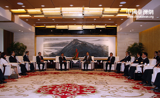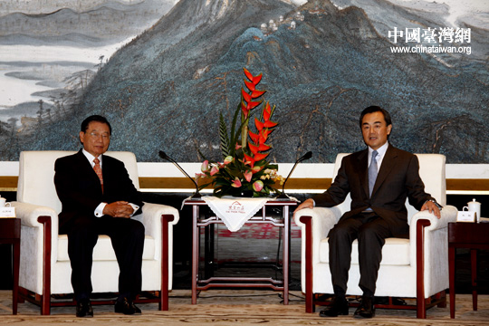 26日下午,中台办、国台办主任王毅在南京紫金山庄会见了由江丙坤率领的海基会协商代表团一行。 (中国台湾网 钟宝华 摄)