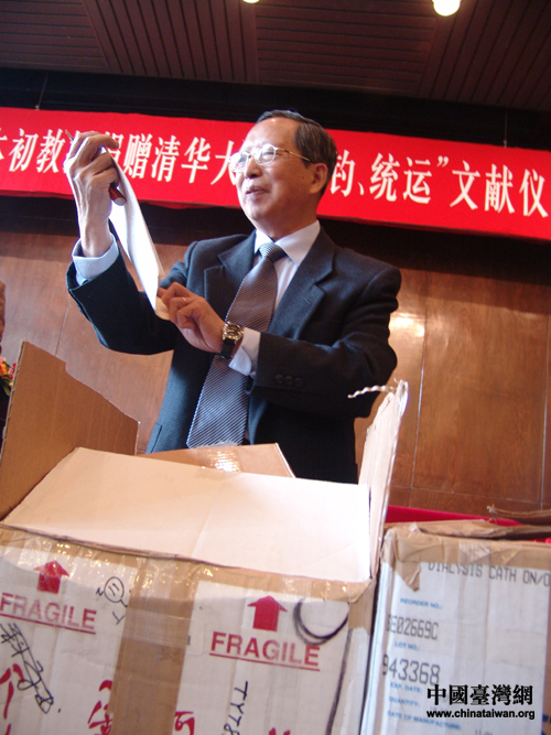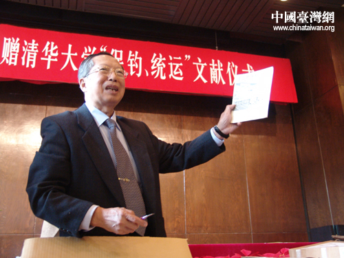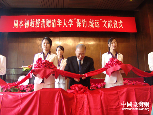 中国台湾网9月29日北京消息 今天上午10点,祖籍台湾的美国休斯顿大学退休教授周本初,将其保存三十多年的“保钓、统运”文献资料,捐赠给清华大学图书馆。捐赠仪式在清华大学图书馆报告厅举行。