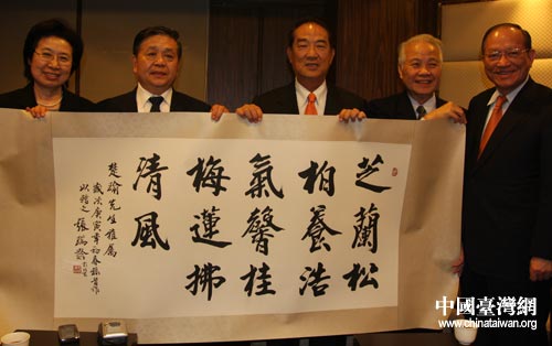 海协会副会长王富卿回赠亲民党主席宋楚瑜书法作品。(中国台湾网 黄建文 摄)