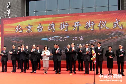 5月7日,北京首条台湾文化主题商业街——北京台湾街正式开街。中国国民党荣誉主席连战,中共中央政治局委员、中共北京市委书记刘淇,全国政协副主席、台盟中央主席林文漪,中共中央台办、国务院台办主任王毅,海协会会长陈云林等为台湾街开街。(中国台湾网 董洁 摄)